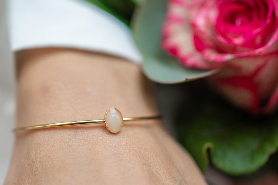 Doré à l’or fin : le bijou doit être tenu à l’écart des fluides, et des frottements trop fréquents.